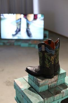 The boots, a video, drawings and texts illustrate a research about regional trees that crack and damage cement infrastructures, a general undesired effect that happens within the relation of vegetation and urban development, but that my aunt beautifully imagines as a way of recuperating her cultural capital and community.