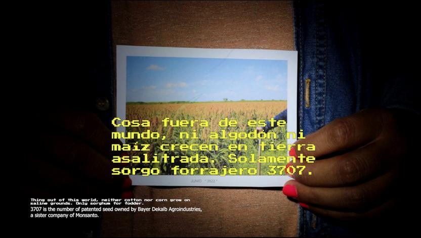 The story of this video is guided by the emotional and economical landscape that my family has known for generations. It portrays the actual state of el rancho, their farm house, narrated by me in my position as a daughter that follows their imaginations, domestic practices, memories and death. I observe the decadence of our main economy and culture. I emphasize that this space is now taken care by older people and that their environment has radically changed due to the growth of the nearby city of Matamoros, the lack of irrigation water, and the progressive salinification of soil.